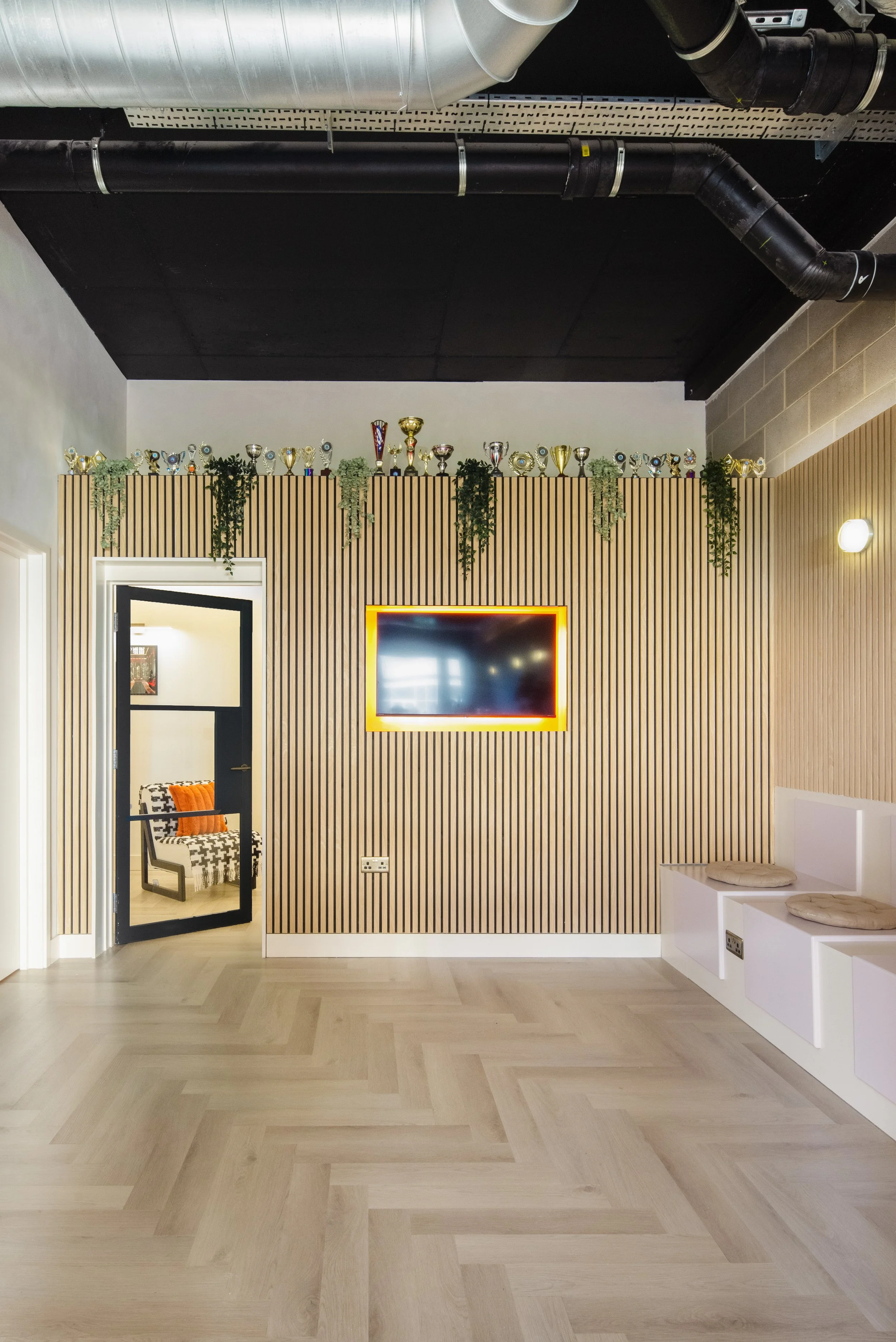 Modern dance studio with a scandi aesthetic. Full sprung floor, reception and wellness room available for hire. Studio dimensions: 12.5 x 6m.
